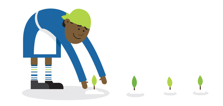 Young seedlings, grown in a nursery, are planted out into the field and watered, if necessary, until their roots begin to take. Seedlings that do not survive the initial planting are replaced with new ones in a process called blanking, to ensure a full stand.