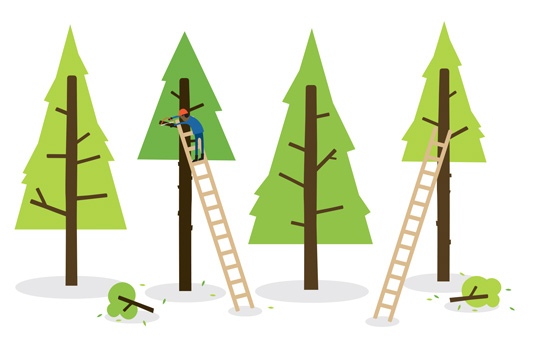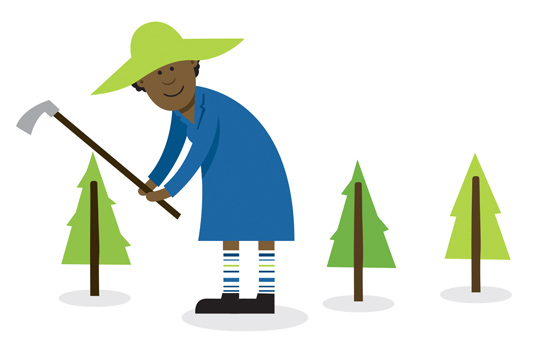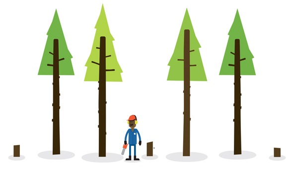 Trees are pruned at four stages during the tree’s early life, This is done by pruning the lower, dead branches off. This ensures the best quality, knot-free timber when sawn into planks.