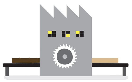 At 28-30 years old, the pine stands are harvested and delivered to the mill. Harvesting is done with people as well as machines and plantation residue (branches, etc.) are left on the ground to minimise soil erosion and compaction resulting from harvesting operations. Logs are delivered to the sawmill within a few days of harvesting in order to produce the best possible planks and woodchips.